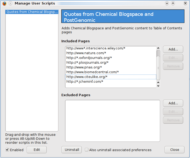 Now, I only need to remind you of Userscripts for the Life Sciences (DOI:10.1186/1471-2105-8-487) that we have the methods to link these comments back to the journal website. The Quotes from Chemical Blogspace and Postgenomic script in particular, does the hard work (needs GreaseMonkey, the script can be downloaded here; see also Noel’s original post). This way, we can read the comments when we visit the papers homepage: