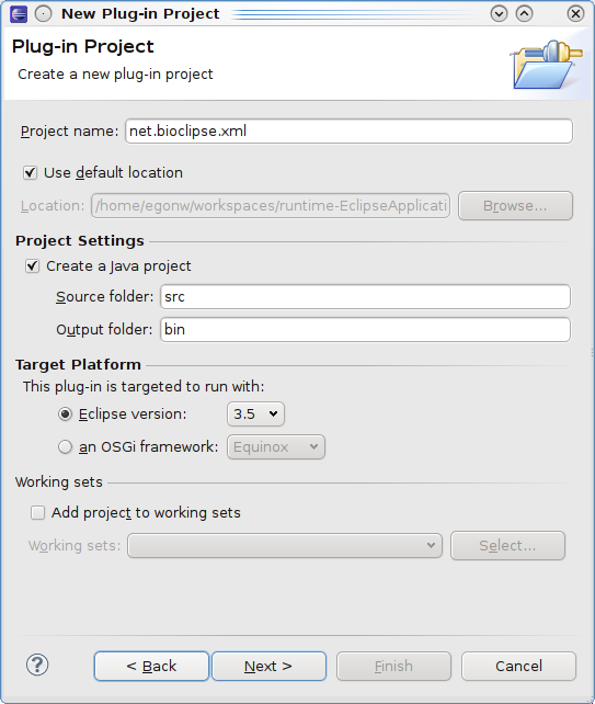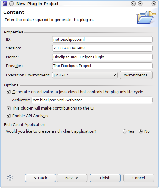 With a new Eclipse version also comes new screenshots to talk you through the process of setting up a new Bioclipse manager plugin.