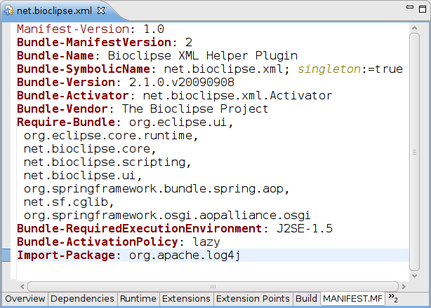 the last line of the next screenshot to the MANIFEST.MF of your new plugin: