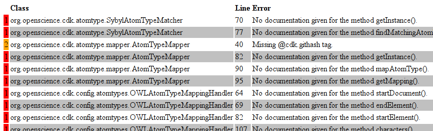 This list shows a mix of tests that are now implemented in OpenJavaDocCheck itself, but the third line is actually a test that is plugged in and specific for the CDK. This is an important feature, I think, and allows users of OpenJavaDocCheck to add functionality is that is not interesting to the general public, but very interesting for the JavaDoc being analyzed. Well, at least, it is to our CDK project :)