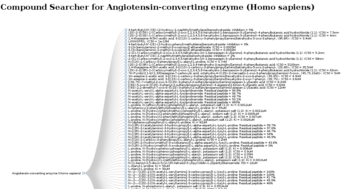 The first team (Mischa-Alexander and Hamza) focused on the ACE inhibitors (type:”drug class”) and the WP554 from WikiPathways. The use a tree structure to list inhibitors along with their activity: