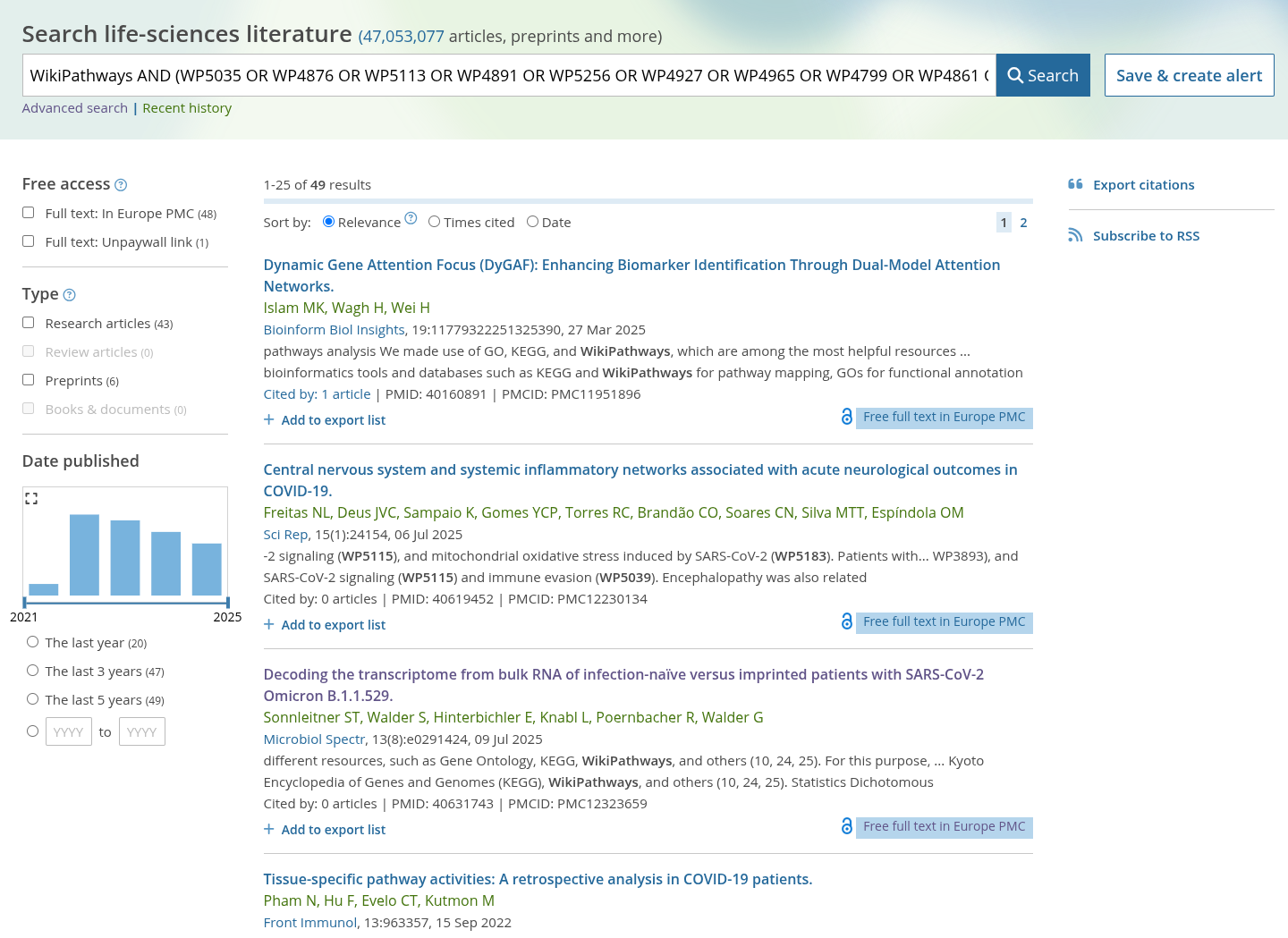 A second new feature is the “Citations” tab on both pages, which link to Europe PMC with a dedicated search for articles mentioning those author or community pathways: