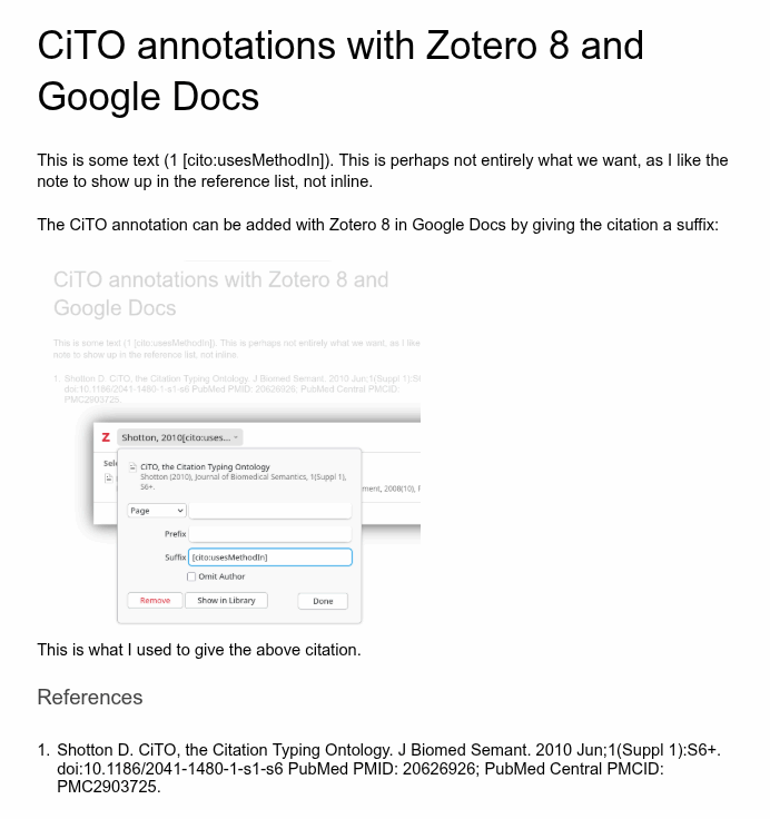 Still, Zotero 8 brought in prefix and suffix support, and I was wondering if this could be used for CiTO citation intent annotations. And it can. This was the result, and make of it what you want: