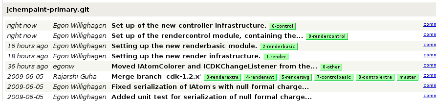 I knew it was going to be painful, but making the jchempaint-primary branch a proper patch to the CDK master branch is painful. I am working my way towards setting up a git repository (IMPORTANT: these patches are not final yet, and their history will change, as I am rebasing regularly to make cleaner patches! Making copies is save, but please hold of any forking and/or branching on top of it until it is final. Thanx.) for the patch, with split ups of the various parts into reviewable blobs: -